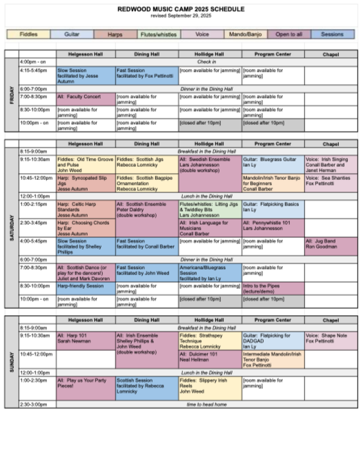 Redwood Music Camp 2025 Workshops